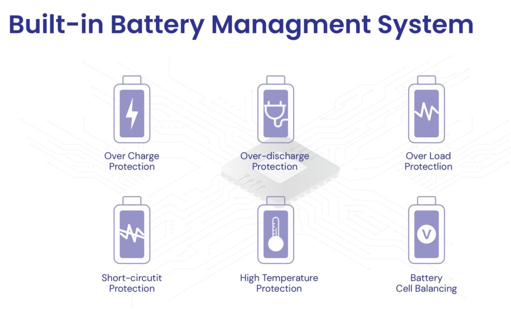 1. Safety: The BMS enhances the safety of the LiFePO4 battery by preventing potentially hazardous situations. It continuously monitors the battery’s temperature, voltage, and current levels to prevent overcharging, over-discharging, and overheating.The BMS also safeguards against short circuits and provides thermal runaway protection.These safety features minimize the risk of accidents, thermal instability, and battery damage, ensuring the well-being of users and the longevity of the battery.