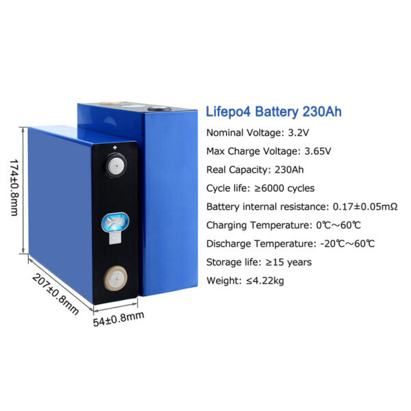 • High capacity: The 230Ah capacity provides ample energy storage for various applications.